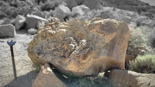 Just a rockfall from the petroglyphs find layered rocks for climbing here, imagine tracks of dinosaurs - a Rorshach blot of footprints frozen in time.